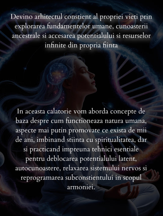 Se lucreaza la nivel profund, de subconstient, care reprezinta mintea sufletului, cu ajutorul supraconstientului nostru, adica mintea spiritului, care ne ghideaza la fiecare pas, in conexiune directa cu Dumnezeu/Universul. Traind in prezent in deplina armonie si echilibru, abundenta si prosperitate, iubire absoluta si infinita, ghidez acum si alte suflete sa-si atinga potentialul maxim si sa traiasca viata visurilor lor.